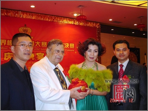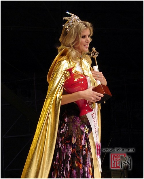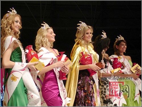 據(jù)世界模特大賽國際組織機(jī)構(gòu)執(zhí)行主席、第十九屆世界模特小姐大賽國際總決賽執(zhí)委會(huì)主席安娜小姐介紹說,選擇中國德化的富貴紅瓷瓶作為大賽唯一指定獎(jiǎng)杯有著特殊的意義,突破了以往很多國際選美賽事使用水晶作為獎(jiǎng)杯的傳統(tǒng)習(xí)慣,能選擇富貴紅這樣一個(gè)標(biāo)志中國文化的一個(gè)獎(jiǎng)杯作為獎(jiǎng)杯,讓她感覺特別的貼切,用能代表中國文化的富貴紅產(chǎn)品作為獎(jiǎng)杯,在選美賽事里面這應(yīng)該是唯獨(dú)的一個(gè),很另類的一個(gè)獎(jiǎng)杯。中國最吉祥的顏色是紅色,富貴紅它的名字也就是說人的生活榮華富貴,選擇它,因?yàn)槭滥L刭愒谥袊e辦,就想有中國特色的獎(jiǎng)杯,作為一個(gè)代表、象征,在此之前,已連續(xù)兩屆選擇富貴紅瓷瓶作為大賽獎(jiǎng)品,得到了組委會(huì)的認(rèn)同和獲獎(jiǎng)佳麗的青睞。安娜表示,今后還要將德化的富貴紅瓷作為世模大賽永久性獎(jiǎng)品,使得德化名瓷與世模大賽相得益彰,紅紅遍全世界。