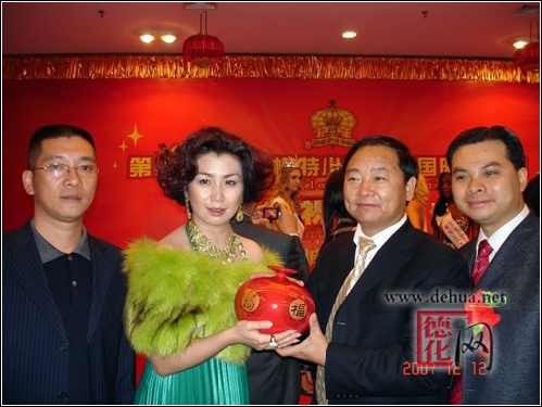 五洲模特盈,T臺(tái)冠冕晉;窯寶授佳麗,瓷都揚(yáng)名聲。第十七、十八屆世模小姐大賽指定獎(jiǎng)品,第九屆外交部對外友好和平聯(lián)誼會(huì)贈(zèng)送外國使節(jié)禮品,“9·8”中國國際投資貿(mào)易洽談會(huì)組委會(huì)指定貴賓禮品,福建省委贈(zèng)給菲律賓總統(tǒng)阿羅約的外事禮品——富貴紅高溫紅釉藝術(shù)瓷,被在山西運(yùn)城第19屆世界模特小姐大賽國際總決賽選定大賽唯一指定獎(jiǎng)杯和貴賓禮品,頒發(fā)給第十九屆世界模特大賽獲獎(jiǎng)佳麗,這是富貴紅“青春麗人”紅釉瓷瓶連續(xù)三屆成為國際頂級(jí)選美賽事指定獎(jiǎng)杯。