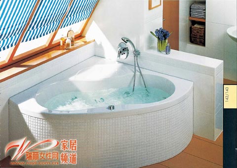 如果衛(wèi)浴間是全落地式斜屋頂或者是斜屋頂下方特別低,這時(shí)候可以選擇適合角度的三角形浴缸。這樣就避免了傾斜的角度,大大提高了其舒適性。