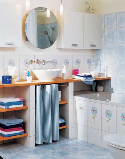 帶滾輪的低矮浴室柜,可以裝上各種洗浴用品和換洗衣服方便地推到浴缸前。