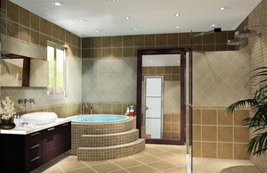 醇厚濃郁的咖啡色受到越來(lái)越多上層人士的青睞,用博洛尼深咖啡色瓷磚作為主色裝飾墻面和地面既顯檔次又便于收拾打理。在長(zhǎng)方形的衛(wèi)浴空間中,淺色瓷磚大面積的鋪貼墻面,U型的咖啡瓷磚當(dāng)之無(wú)愧成為浴室中最具創(chuàng)意的設(shè)計(jì),墻面與地面聯(lián)合貫穿,將衛(wèi)浴分隔為兩個(gè)部分。