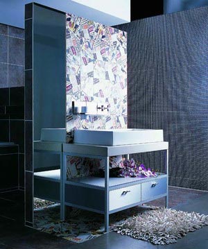 如果你的墻面底色較深就運(yùn)用博洛尼最大膽的POP花色瓷磚作為主題墻裝飾墻面吧。讓報(bào)紙堆砌出的亮麗色彩大面積裝飾,拼貼的效果會(huì)使浴室設(shè)計(jì)看起來(lái)更加大氣,配上熠熠生輝拉絲鋁浴室家具和亮面鏡子絕對(duì)拉風(fēng)。張揚(yáng)的創(chuàng)意是時(shí)尚年輕人不二的選擇。