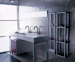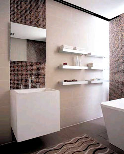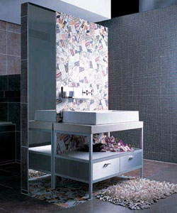 鮮亮的顏色永遠(yuǎn)不會被設(shè)計師遺忘,在經(jīng)過一個沉沉冬季后,博洛尼已迫不及待地推出這款火紅的衛(wèi)浴主題墻,夏日的熱力激情勢不可擋,尤其能凸現(xiàn)摩登女郎們的驚艷魅力。2006年的亮色主題較往年更大膽,通體的紅色烤漆浴室家具加上銀色不銹鋼入墻龍頭,以及如蕾絲般的ArtDeco風(fēng)格瓷磚裝飾,就這樣整體造型吧,即便是十分自我的衛(wèi)浴空間,也要Show出最響亮的時尚宣言。