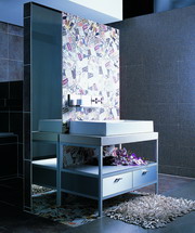 衛(wèi)浴主題墻的魅力在于,它的色彩和廓形能為整體衛(wèi)浴增添醒目的時(shí)尚感。浴室家具、面盆、龍頭、浴室鏡、瓷磚馬賽克的整體搭配創(chuàng)造出衛(wèi)浴中極富個(gè)性的視覺(jué)核心,還有無(wú)限快樂(lè)的主題衛(wèi)浴生活。