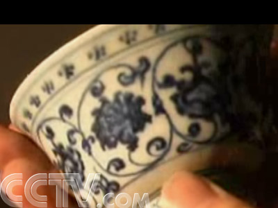 主持人:哎 怎么樣,個(gè)頭雖小,來頭去不小,這就是一個(gè)仿的明代永樂青花壓手杯,當(dāng)然真的是在故宮里頭。但是接下來呢我們就要講一個(gè)關(guān)于仿的這個(gè)壓手杯的故事。