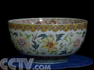 毛曉滬:這個(gè)吧,價(jià)格是比較難估的,為什么呢,就是這么大的東西,現(xiàn)在在市場(chǎng)上,沒有見拍賣過,這是孤品,我曾經(jīng)問過故宮的專家,我說的,像這么大的碗,故宮有沒有,那么包括耿老,都說過,說根本就沒有。也就是說這只碗應(yīng)該是清朝末年從宮里流出去的,至于怎么留出去的,非常難說。因?yàn)槟,?dāng)初,當(dāng)時(shí)呢,那個(gè)宣統(tǒng),也就是溥儀做皇帝的時(shí)候,大量宮里的東西都曾經(jīng)被太監(jiān)啊,或者被溥儀啊帶出宮里頭,那么估計(jì)這只碗,也是在清朝晚期動(dòng)蕩的時(shí)候,從故宮留出去的。