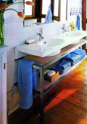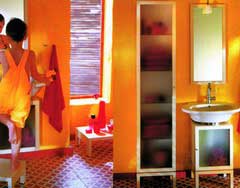 翻翻家居雜志,今年衛(wèi)浴的變化最明顯就是體現(xiàn)在墻面上,具有感情色彩的暖色調的防水墻漆、雍容淡雅的防水壁紙,還有那些天然的原木色板材,正逐漸使浴室呈現(xiàn)出迥然不同的風情。其實,要想達到這樣的裝飾效果并不難,只要認識一些新材料就可以輕松操作了。
