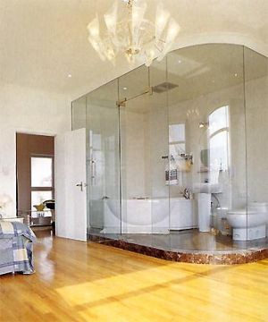 近幾年來,隨人們生活水平提高,人們更追求生活中的時尚、情趣與個性。時下歐洲 非常流行的衛(wèi)浴間、臥室一體化也走進(jìn)中國,且深受年輕人和白領(lǐng)階級寵愛。這種浴室緊鄰主臥室,二者之間只用一塊磨砂甚至透明玻璃隔開,讓最為隱私的衛(wèi)生間變得透明開放化。但是如果臥室中的衛(wèi)生間是面向客廳或其他公共空間,最好不要選擇透明衛(wèi)浴。浴室中水汽繚繞,里面人影在珠簾下若隱若現(xiàn),這種神秘感正符合當(dāng)下年輕人追求解放的天性。
