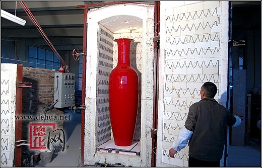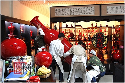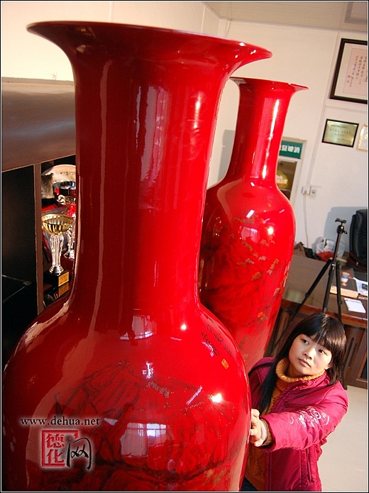 熟悉陶瓷的人都知道,尺寸高大的紅釉瓷器一直是陶瓷的一個燒制難題,經(jīng)過德化縣陶瓷工藝創(chuàng)作人員多年來的攻堅克難,高溫紅釉瓷高度也由幾十公分突破到一米多,再到如今的2米多,每次的突破都是一個大跨越。