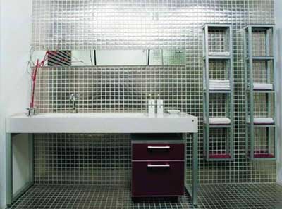 面盆下面的空間大有作為,是片“心有多大就有多大”的天地。放個帶輪滑的小柜子,收納平日里不常用的東西,既美觀又方便,造型還任你擺。面盆一側(cè)的兩個四面鏤空的豎架,簡單大方,散發(fā)著青春的氣息。