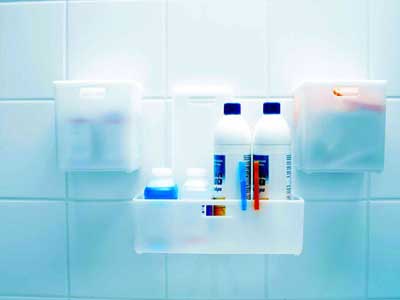 金屬筐式的最大優(yōu)點就是四周有護欄,特別適合一些易碎品或高度較高的玻璃瓶。此外,還很能盛東西。這種款式應(yīng)該很受大手大腳消費者們的青睞,搬來搬去也不至于晃蕩掉。如果你啥質(zhì)地的衛(wèi)浴用品都有點兒,那這款收納架最合適不過了。