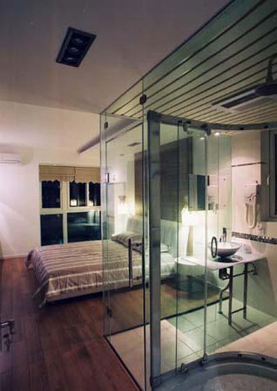 主臥的衛(wèi)生間沒(méi)有采光窗戶,或是主臥的空間看起來(lái)并不大,怎么辦?這幾年的裝修中,一些前衛(wèi)的人,贊同設(shè)計(jì)師的提議,將衛(wèi)生間的門墻打掉,裝上大面積的玻璃,營(yíng)造出通體透明的衛(wèi)浴空間,并形成了大空間的效果。