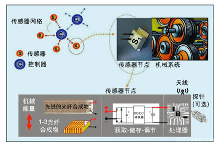 EH本身并不是新概念,諸如手搖無線電、手搖供電的電筒、風車和太陽能都是應用類似的理念。其新穎之處是將EH應用到超低功耗的嵌入式電子設備中。高電荷壓電陶瓷和光纖合成工藝技術的結(jié)合使得自供電系統(tǒng)能用在很多種電子系統(tǒng)中。