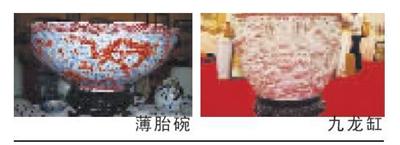 這些展品中,有一件《白玉深浮雕九龍?zhí)卮蟾住,是千件陶瓷中最昂貴的精品。此缸仿清宮珍藏,缸口直徑88厘米,重量150公斤,是工藝美術(shù)師歷時半年才精雕細(xì)刻而成。