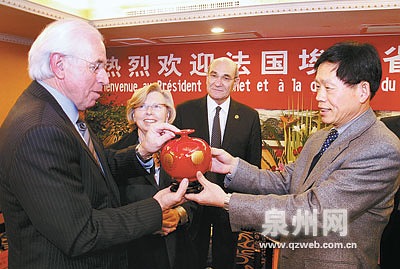 會(huì)見(jiàn)時(shí),朱明向客人介紹了我市經(jīng)濟(jì)社會(huì)發(fā)展和建設(shè)海峽西岸經(jīng)濟(jì)區(qū)現(xiàn)代化工貿(mào)港口城市的基本情況。朱明說(shuō),埃羅省與泉州有著良好的友好交往基礎(chǔ)。前年,雅克·阿特蘭副省長(zhǎng)曾到泉州訪問(wèn),去年泉州代表團(tuán)也到法國(guó)考察。這幾年,泉州的一些文化團(tuán)體在全國(guó)友協(xié)的指導(dǎo)下,多次到法國(guó)去演出和展覽,特別是泉州木偶劇團(tuán)在法國(guó)演出的時(shí)候受到了法國(guó)民眾的贊賞。有了過(guò)去的交往基礎(chǔ)和現(xiàn)在簽署的兩地結(jié)好意向書(shū),相信兩地之間各方面的友好交流與合作會(huì)更加深入、更加廣泛。