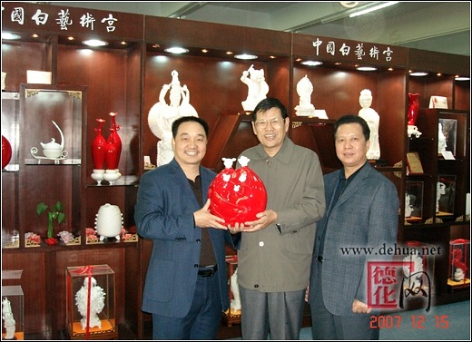 從1989年開始,他曾多次拜訪啟功、趙樸初等名家大師,從中國傳統(tǒng)文化中獲取營養(yǎng)和創(chuàng)作靈感。在拜見啟功教授時,啟先生鼓勵他要繼承德化中國白的傳統(tǒng)技藝,要在傳承與創(chuàng)新上下功夫。啟先生談了兩個觀點(diǎn):一是中國白追求的最高境界應(yīng)像玉的境界,沒有上釉更能體現(xiàn)玉的質(zhì)感;中國紅應(yīng)追求的是紅而雅,美而艷,亮而柔的藝術(shù)境界。二是德化瓷雕不要局限于佛像彌勒、觀音之類的傳統(tǒng)題材,搞藝術(shù)的一定要貼近生活、反映時代,才更有感染力。對德化瓷有著天然靈氣的陳仁海,在大師的指點(diǎn)下,上下求索,歷盡千辛萬苦,終于以獨(dú)特的理念與超常人的執(zhí)著,叩開了陶瓷藝術(shù)的大門。經(jīng)過十幾年的潛心鉆研與實(shí)踐,終于創(chuàng)造出白瓷沒有上釉而溫潤、明凈、精巧、秀雅與玉媲美,不是白玉更勝白玉的“中國白”;研制開發(fā)了以中國白技藝為核心的“中國紅”、“描金彩繪中國紅”、“多彩冰裂沙金結(jié)晶山水中國白”、“五彩青花描金中國紅釉中國白”等“中國白”系列精品、珍品和極品。