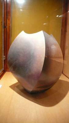 和人們平日所見的日本陶瓷小巧精雅有所不同,這次展出的陶藝作品,除了不少是抽象、幾何形狀,更有許多是很大件的器皿,可見在風格上與傳統(tǒng)的有很大分別。