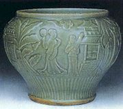在今山西大同,故名。始燒于金代,終于元代。清乾隆四十七年(1782)刊刻的《大同府志》中謂有“青瓷窯”,成二十三里。據(jù)此在大同西郊瓦窯村發(fā)現(xiàn)一瓷窯遺址,證實(shí)即方志中的青瓷窯。
