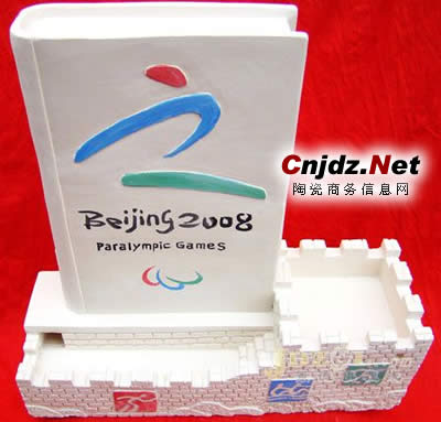 近日,專為殘奧會創(chuàng)作的瓷器作品“自強豐碑”在景德鎮(zhèn)面世,由景德鎮(zhèn)殘疾人陶藝家李貴鎮(zhèn)創(chuàng)作完成。“自強豐碑”整體外形好像一艘正在航行中的帆船,長28厘米,高25厘米。“自強豐碑”座底是萬里長城,長城四周雕刻有殘奧會運動標志;上部為《自強大全》典籍,封面繪有2008年北京殘奧會會徽。李貴鎮(zhèn)準備在2008年殘奧會開幕前夕,把這個作品捐贈給北京奧組委。
