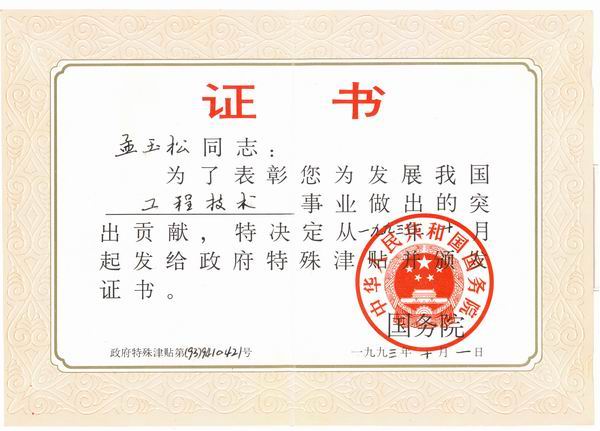 1993年被國務(wù)院批準享受政府特殊津貼。