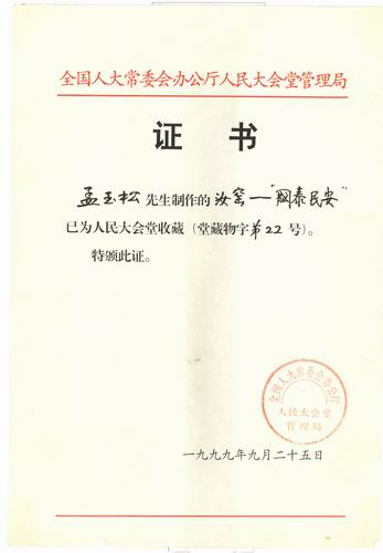 1999年在中華人民共和國建國五十周年之際,她制作的國泰民安大花瓶被人民大會堂收藏。