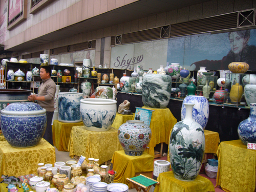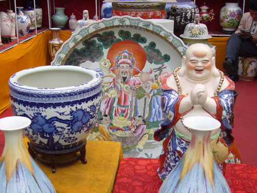 本次景德鎮(zhèn)瓷器展從4月1日開始為期15天。記者昨日在展會上看到, 近五十個景德鎮(zhèn)瓷器展位里,擺放著琳瑯滿目的花瓶、茶具、家居飾品等,小到一塊錢的玩偶,大到數(shù)十萬元的名家精品一應(yīng)俱全,應(yīng)有盡有。據(jù)了解此次展覽的瓷器共有幾百個品種,包括宮廷青花、高仿琺瑯彩、氣血狼紅、粉彩、雕塑瓷、手繪、釉瓷等。