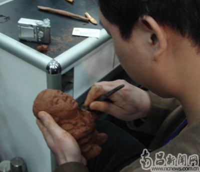 工藝師現(xiàn)場(chǎng)表演泥塑藝術(shù)