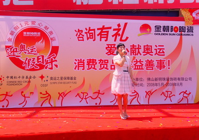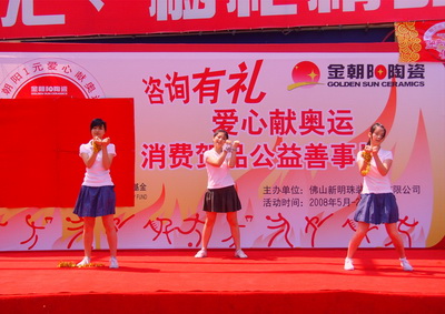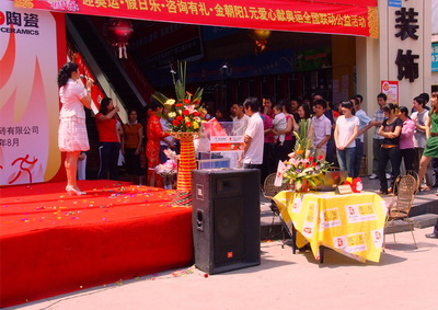 我們搜狐焦點(diǎn)家居網(wǎng)也非常感謝金朝陽陶瓷對(duì)我們的工作支持,在這里我們預(yù)祝他們的活動(dòng)圓滿成功,大家都為中國(guó)奧運(yùn)獻(xiàn)出一份愛心,為中國(guó)奧運(yùn)加油!