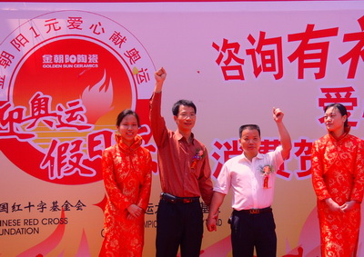 “迎奧運(yùn) 假日樂”金朝陽1元愛心獻(xiàn)奧運(yùn)公益活動(dòng)開啟儀式,與福州圣火傳遞時(shí)間同步 ,由搜狐焦點(diǎn)家居網(wǎng)作現(xiàn)場(chǎng)獨(dú)家報(bào)道.