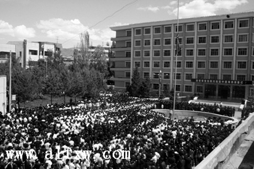 為表達對汶川大地震中遇難人們的哀悼,5月19日北京時間14時28分,阿勒泰山城人民懷著沉重的心情在舊行署樓門前同全國人民一道下半旗為在汶川大地震中所有遇難的人們致哀。