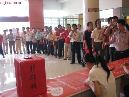 捐助活動現(xiàn)場,安華全體員工排起長龍慷慨解囊