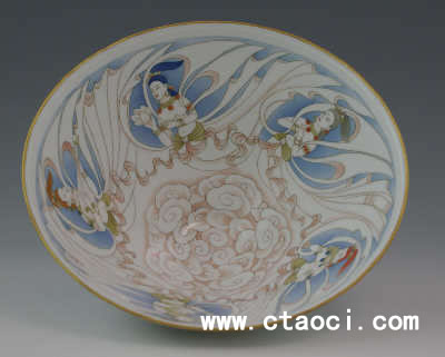 中華陶瓷網(wǎng)訊,近日上海陶瓷博覽中心展出了一件漢光瓷作品“東方飛天斗笠碗”:斗笠碗29公分超大口徑象征29屆2008北京奧運(yùn)會(huì),祥云縈繞五尊飛天,代表世界五大洲和奧運(yùn)五環(huán);輔以五彩祥云為北京奧運(yùn)祈福祝愿。 據(jù)了解作品由中國工藝美術(shù)大師——李遊宇所作,作者用瓷器藝術(shù),為奧運(yùn)獻(xiàn)禮!(jù)了解特1、特2號(hào)東方飛天斗笠碗,被前奧運(yùn)冠軍王軍霞,中國國家博物館、中國工藝美術(shù)館收藏。