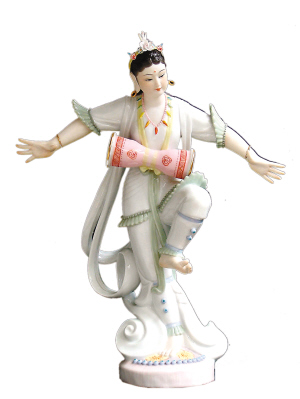 在大師看來,人物瓷塑應(yīng)該以塑為主,少施彩繪。在創(chuàng)作技法上,大師融合了敦煌石窟和西安洛陽等古都雕塑壁畫的技法,另外還從潮州本地特色工藝美術(shù)如潮繡、木雕、泥塑等廣泛吸收營養(yǎng)。在潮州大吳村的大吳泥塑,同樣也是中國四大泥塑之一。陳鐘鳴跟泥塑藝人學(xué)習(xí)了泥塑中的捏、印、貼等技法,并用在瓷塑作品中,也取得了藝界的贊譽(yù)。