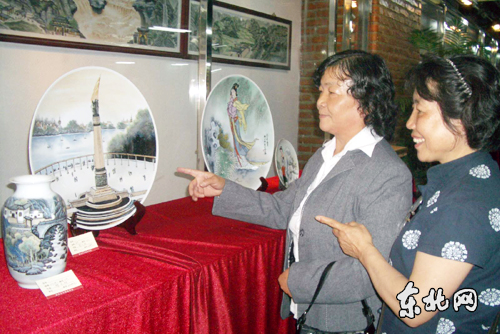 此次展覽共展出“陶、瓷、石”三大類200余件精美工藝品,有中國工藝美術(shù)學(xué)會會員、景德鎮(zhèn)著名陶瓷藝術(shù)家、景德鎮(zhèn)畫院高級畫師邵天助親手制作的百余件精美陶瓷工藝品。黑龍江省美術(shù)家協(xié)會理事、北大荒畫院副院長、百硯齋主人、農(nóng)墾日報社美術(shù)編輯趙慶忠收藏的硯雕大師方見塵及柯仲運70余方惟妙惟肖的硯雕,以及省書法家協(xié)會會員、省著名刀筆書法藝術(shù)家劉仲虎在陶、玻璃、瓷器等上面剛?cè)峤粫牡犊趟囆g(shù)品。