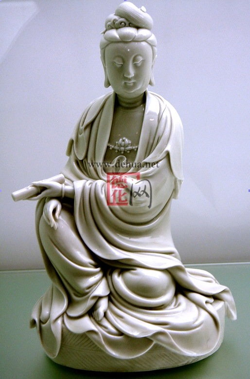 德化窯就是其中的重要收藏,有二十多件,包括宋至清。何朝宗持經觀音是從歐洲回流的珍品之一,高26厘米,蓋“何朝宗”葫蘆印章,是香港地區(qū)最重要的藏品。該館還藏有許友義的和合二仙、騎麟觀音。