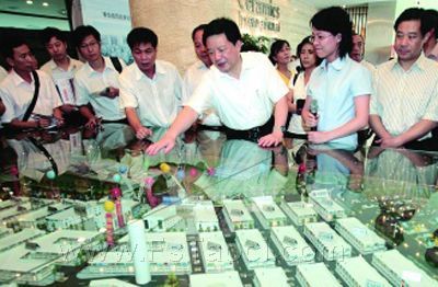 昨天下午,市委書(shū)記林元和與禪城區(qū)領(lǐng)導(dǎo)正在察看瓷海國(guó)際陶瓷交易中心的規(guī)劃模型。本報(bào)記者張由瓊攝