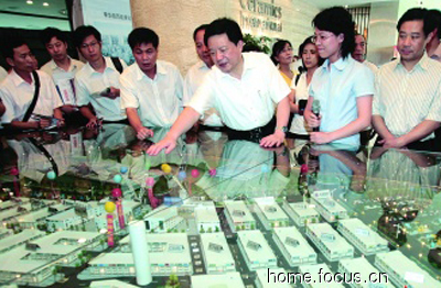 佛山市委書記林元和與禪城區(qū)領(lǐng)導(dǎo)正在察看瓷海國(guó)際陶瓷交易中心的規(guī)劃模型。