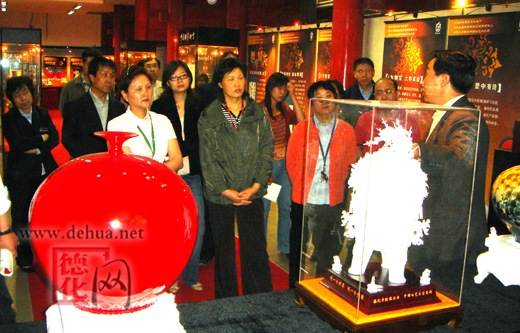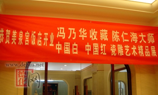 經(jīng)2008奧林匹克美術(shù)大會組委會推薦邀請,2008年7月26日,中國白藝術(shù)宮投資鑒藏專家委員會會長馮乃華先生收藏陳仁海大師中國白、中國紅瓷雕藝術(shù)精品展在奧美大會中外藝術(shù)家駐地北京美泉宮飯店正式開業(yè)中展出。