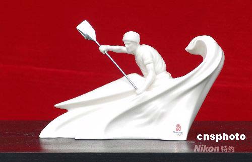 2008年4月,在江西省景德鎮(zhèn)市,一套名為“運(yùn)動(dòng)項(xiàng)目陶瓷擺件”的環(huán)保型奧運(yùn)特許瓷亮相。該作品保持環(huán)保不加骨粉,以技術(shù)達(dá)到與骨瓷同樣的通透效果。這套奧運(yùn)特許瓷投資近300萬美元開發(fā)而成,成品造型優(yōu)美,全套共29件,售價(jià)高達(dá)25萬元。作者: 石衛(wèi)明