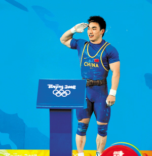 廖輝軍銜沒(méi)陳?ài)葡几撸贿^(guò)在奧運(yùn)會(huì)成績(jī)上,現(xiàn)在能和她“平起平坐”了。這個(gè)21歲的湖北伢今晚(8月12日)一舉奪得北京奧運(yùn)會(huì)男子舉重69公斤級(jí)比賽金牌。當(dāng)他在領(lǐng)獎(jiǎng)臺(tái)上敬了一個(gè)帥氣的軍禮,全場(chǎng)觀眾報(bào)以熱烈的掌聲。