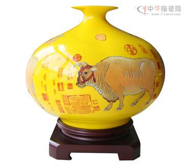 永豐源的五牛圖金尊瓶---國瓷與名畫牽手