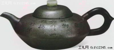清代道光年間,社會上出現(xiàn)了鑲包金屬及嵌玉等質(zhì)的紫砂茗壺。據(jù)云,此法可起美化壺的作用,且有助于壺的保溫。其實(shí),這類茗壺大都是真舊紫砂壺,由于原壺部分破損,或把、或嘴,或蓋打破遺失,為掩蓋缺陷,而用金屬、玉石等材料彌補(bǔ),既可拋光,又可刻上書畫、詩詞以增雅興。