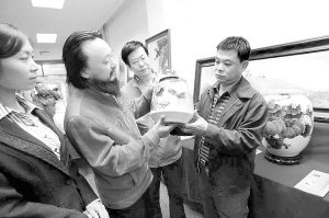 由江西省景德鎮(zhèn)藝術(shù)交流中心、江西商會、天津金泰華文化藝術(shù)品公司等主辦的“首屆江西景德鎮(zhèn)陶瓷繪畫藝術(shù)展”8日在本市江西大廈開幕以來,吸引了許多本市的陶瓷藝術(shù)愛好者。五位來自景德鎮(zhèn)的藝術(shù)家也在現(xiàn)場為愛好者認(rèn)真講解相關(guān)知識。
