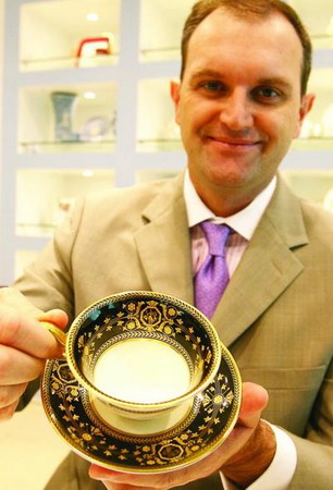 這位專程到蘇的“老外”,是英國(guó)陶瓷之父JosiahWedgwood的第八代傳人。已有近 250年歷史的英國(guó)Wedgwood是國(guó)際居家精品的領(lǐng)導(dǎo)品牌,其代表產(chǎn)品陶瓷餐具一直被歐洲皇室貴族等選用。美羅商城是其在內(nèi)地市場(chǎng)開設(shè)的第19家專賣店,也是其在江蘇市場(chǎng)開設(shè)的首家專賣店,上柜產(chǎn)品包括杯碟、咖啡壺、花瓶等20余個(gè)品種的高檔瓷器。“這套1.3萬(wàn)元的茶杯碟是Wedgwood中的頂級(jí)精品,目前在全國(guó)市場(chǎng)不超過10套”,據(jù)介紹,Wedgwood不少品種都由歐洲能工巧匠手工制作,售價(jià)高達(dá)1.3萬(wàn)元的牡丹形茶杯碟制作時(shí)間長(zhǎng)達(dá)1個(gè)月,共要燒制12次,上面的金粉彩繪采用24K金為原料,每只杯碟的彩繪都需工匠繪制1000余筆才能完工。