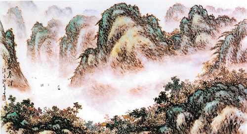 頭一次看到《汪派山水瓷畫選》中登載的汪平孫的瓷畫時,頓感珠山八友瓷畫的氣息撲面而來。皴擦暈染,蒼蒼茫茫,古典而雅致,一派傳統(tǒng)文人意趣。一問,原來汪平孫就是珠山八友之一汪野亭之孫。