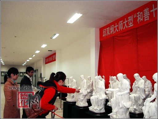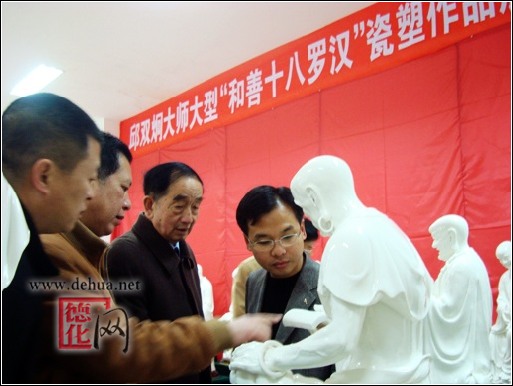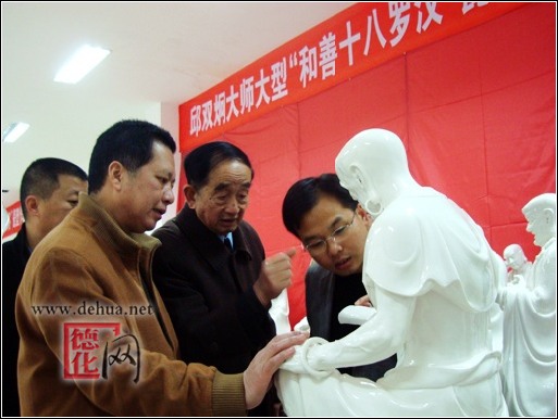 【德化網(wǎng) 訊】“中國白”大型雕塑《和善十八羅漢》是德化縣鳳凰陶瓷雕塑研究所所長(高級工藝美術(shù)師、福建省工藝美術(shù)大師)邱雙炯先生應(yīng)邀為2009年三月在江蘇省無錫靈山召開的世界佛教論壇大會“天花爛漫”展覽項(xiàng)目參展而作。歷時(shí)一年多時(shí)間煉制完成,于牛年的正月初一至十五(2009.1.26-2.09)期間在德化陶瓷博物館隆重推出展覽。市民們可以在此期間前往參觀。