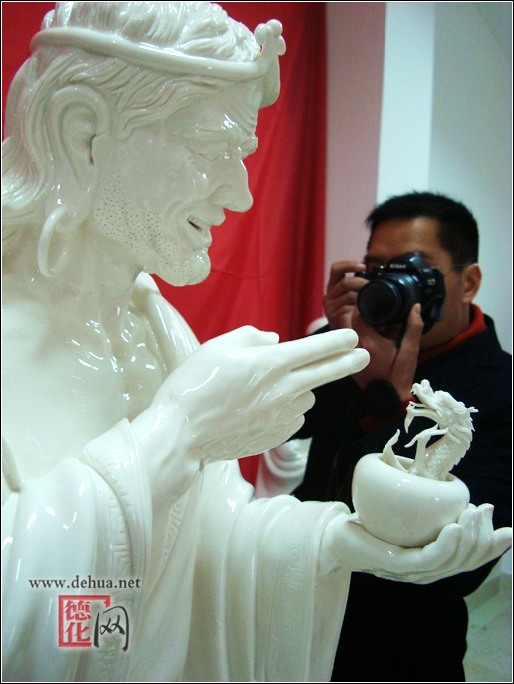 此次展出的“和善十八羅漢”作品選用被譽(yù)為“中國白”純凈上乘瓷土為原料,其配方經(jīng)無數(shù)次研究實(shí)驗(yàn),克服了大體積的中國白瓷在高溫?zé)捴七^程中易開裂軟塌變形等困難,精心設(shè)計(jì)、設(shè)計(jì)、精雕細(xì)刻并經(jīng)1300度以上高溫煅燒而成。作品高約1米左右,重100多斤,體量較大,造型各異,質(zhì)地潔白無瑕,晶瑩剔透,玻化程度高,瓷質(zhì)堅(jiān)實(shí)不吸水不變質(zhì),這是德化縣瓷壇史上的又項(xiàng)突破,打破以往外界認(rèn)為“德化陶瓷無大器”的看法。