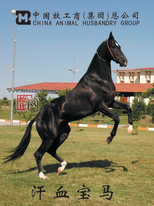 “汗血馬”學(xué)名阿哈捷金馬,該馬產(chǎn)于土庫(kù)曼斯坦境內(nèi)的科佩特山脈和卡拉庫(kù)姆沙漠之間的阿哈爾綠洲,經(jīng)3 000多年的培育,現(xiàn)已成為世界上最古老最優(yōu)秀最神秘的名貴馬種。