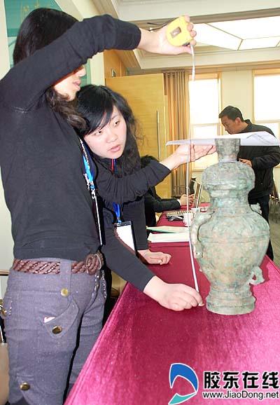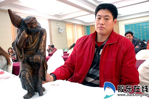 家住牟平區(qū)的衛(wèi)先生是一名收藏愛好者,他告訴記者,自己這次帶來(lái)了一尊木制鑲金“鐵拐李”,請(qǐng)北京來(lái)的專家給鑒定一下。衛(wèi)先生的這件寶貝是“八仙過(guò)海”中的一個(gè),是祖上留下來(lái)的,請(qǐng)好些人鑒定過(guò),都說(shuō)是真的。得知此次來(lái)煙臺(tái)的專家曾在CCTV-2《鑒寶》節(jié)目擔(dān)任過(guò)專家評(píng)委,就決定花200塊錢報(bào)名再來(lái)看看。一位不愿意透露姓名的市民帶來(lái)了一件青銅器,專家現(xiàn)場(chǎng)鑒定之后,給出的估價(jià)是12萬(wàn)元人民幣。這位市民喜出望外,隨即花了1500元,為他的這件寶貝辦理了鑒寶證書。
