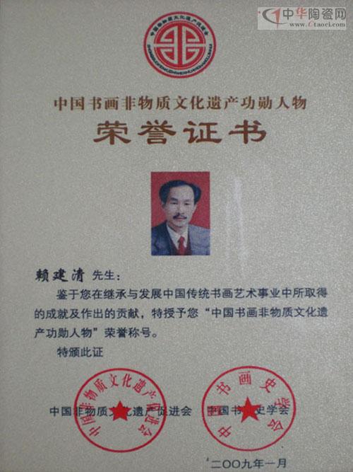 2009年1月20-22日,中國書畫非物質(zhì)文化遺產(chǎn)大會(huì)于全國人大會(huì)議中心會(huì)議廳隆重舉行。此次大會(huì)由國家文化部中國非物質(zhì)文化遺產(chǎn)促進(jìn)會(huì)等主辦,邀請全國參會(huì)代表120位。當(dāng)代實(shí)力派書畫藝術(shù)家賴建清受邀,并被授予“中國書畫非物質(zhì)文化遺產(chǎn)功勛人物”榮譽(yù)稱號。期間,他還在北京大學(xué)舉行的“2009年中國書畫藝術(shù)高峰論壇”上作二十分鐘的專題演講。